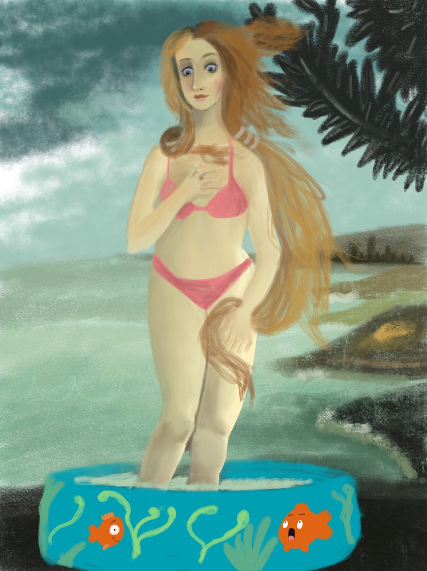 So you may have noticed that the Facebook challenge pieces I have uploaded have been heatwave themed this so far this week. Well someone (a genius might I add) decided to encourage everyone to do heatwave themed parodies on well known masterpieces. Hence the odd bit of oddness, just look away, I’ll tell you when it’s safe.