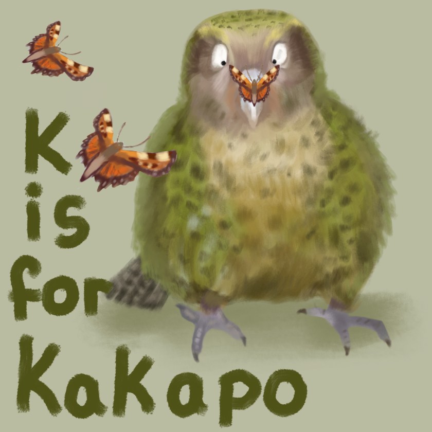 #kakapo #bird #parrot #new Zealand #cute #fun #funny #sweet #illustration #doodle #drawing #sketch #green #alphabet #children #author #writer #book