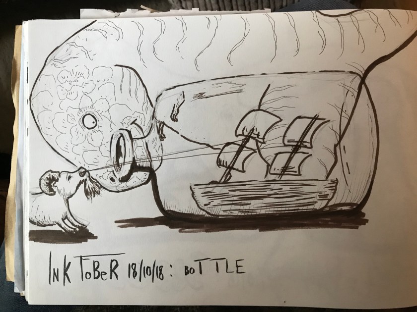 #bottle #ink #ship #ship in a bottle #cute #fun #funny #silly #lol #sail #goat #trex #dinosaur #inktober #inktober 2018 #illustration #doodle #drawing #sketch #bam bofu