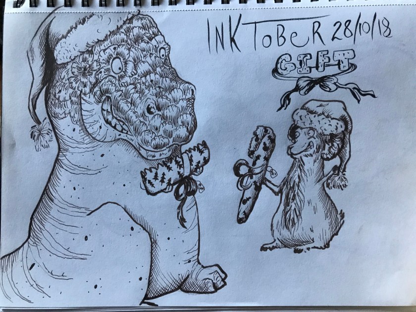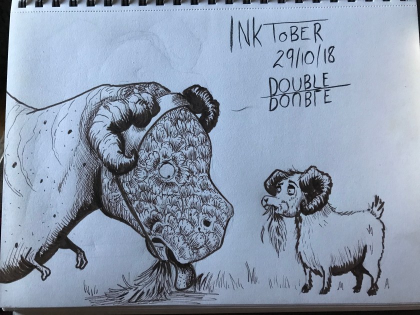 Went for a crazy meal in London yesterday. 8 hours later I finally got home, got mauled by my overexcited dogs and collapsed on the sofa. Exhausted but so glad that life has stopped getting in the way of drawing today, so here are my inktobers for yesterday and today.