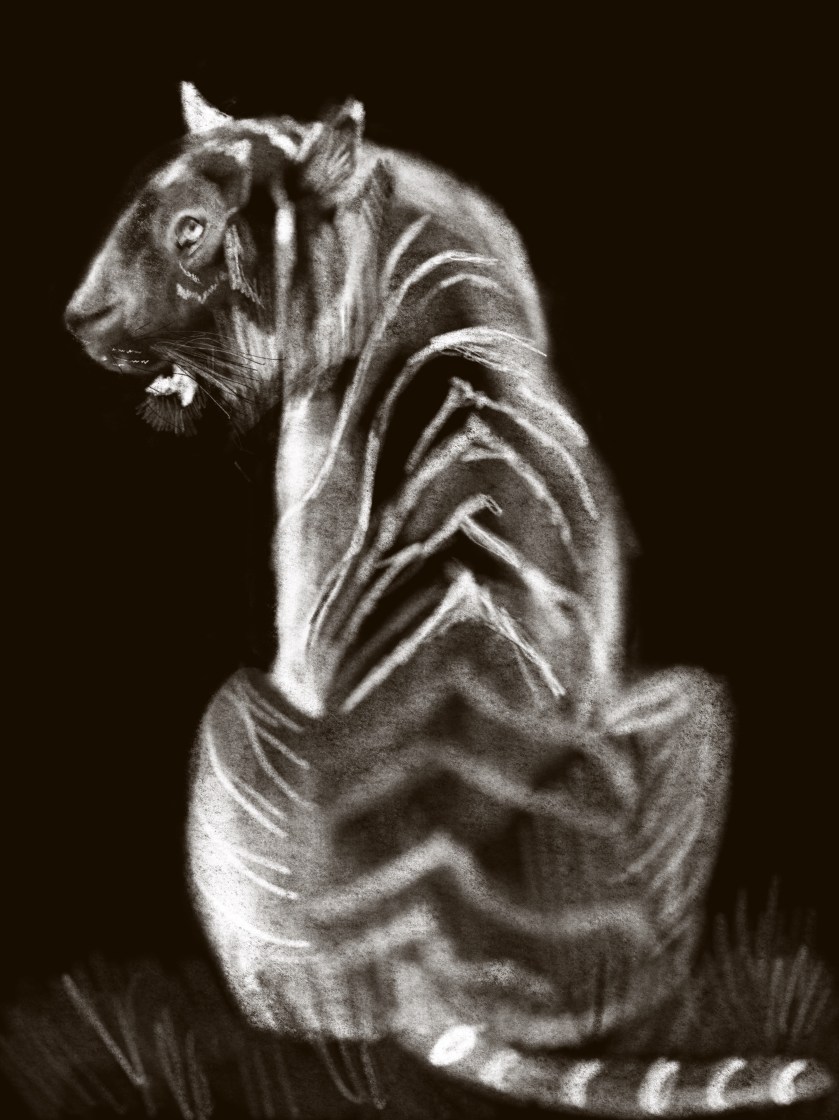 #tiger #doodle #drawing #sketch #big cat #illustration #white on black #fun #study #practice #tiger drawing #tiger white on black drawing #bam Bofu