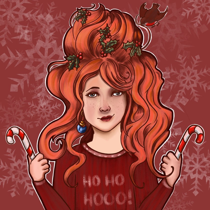 #christmas #candy cane #hair #holly #robin #christmas jumper #christmas design #doodle #drawing #sketch #illustration #noel #cute #fun #lol #bam bofu