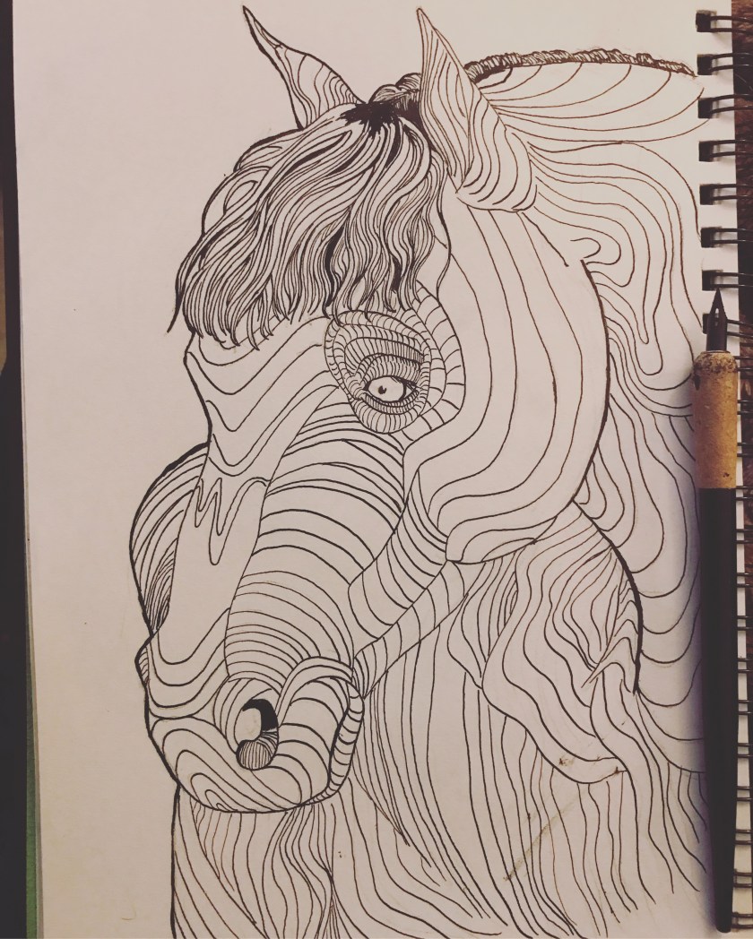 #ink #dip pen #inking #contour art #contour horse #ink horse #doodle #drawing #sketch #illustration #pig #goat #duck #park #bench #cute #fun #funny#sketchbook #lol #bam bofu