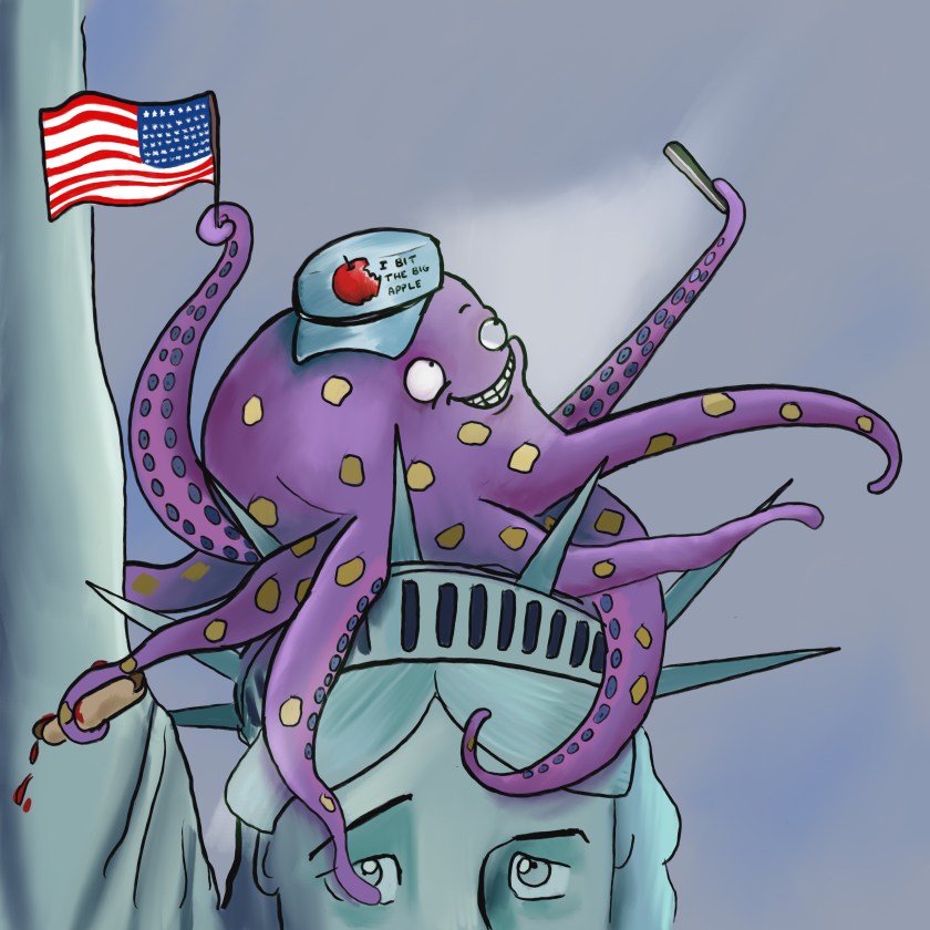 #octopus #sightseeing #tourist #fun #funny #lol #statue of liberty funny #silly #drawing #doodle #illustration #sketch #lol #bam Bofu