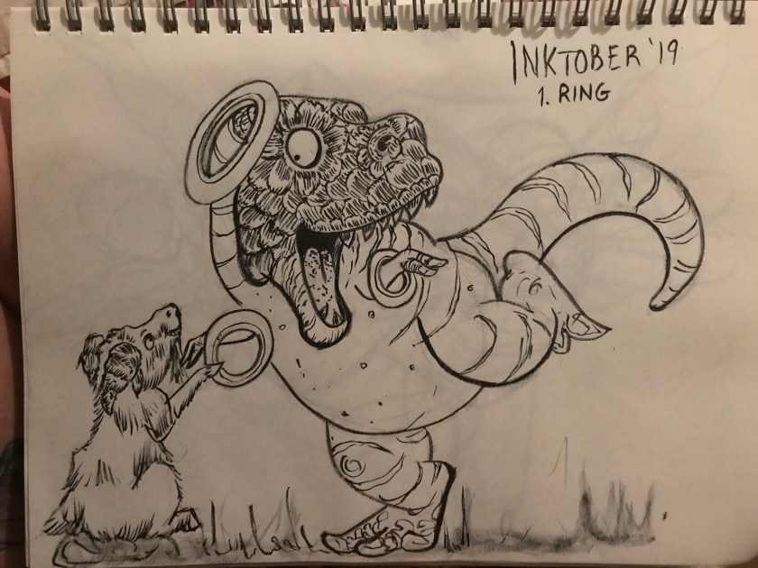 #artlife #illustrator on instagram #instaart #artstagram #artists #doodle #sketch #sketches #sketchbook #illustration #draw #drawing #drawingstudy #study #practice #aesthetic #fun #art #artists on instagram #artist #arts #artsy #arty #artwork #art of instagram #artist on instagram #inktober #inktober 2019 #inking #ink #ring #dinosaur #trex #goat #bambofu #bam Bofu
