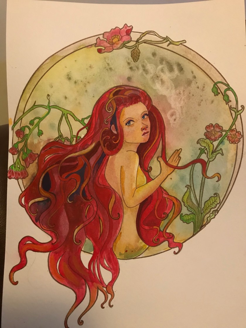 #watercolour #watercolor #traditional art #painting #painter #doodle #drawing #sketch #portrait #art nouveau #practice #hair #red #style #design