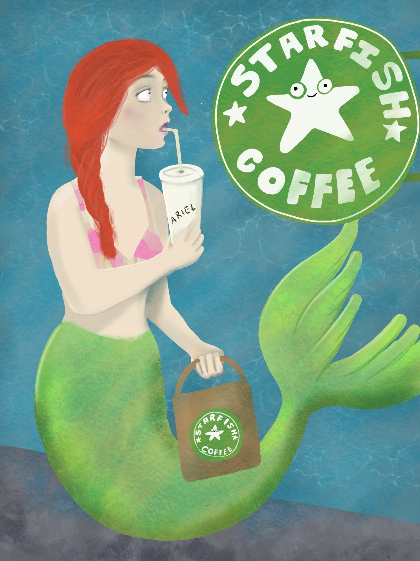 #illustration #illustrator #mermay #mermaid #starfish #coffee #sea #bikini